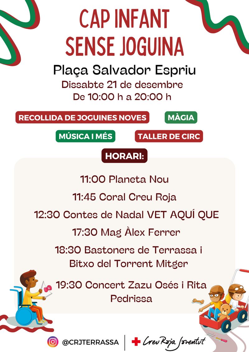 21 de desembre d'11h-12.30h i de 17.30h-19.30h a la Pl. Salvador Espriu Al matí. A les 11 hores. Actuació musical del grup terrassenc Planeta Nou A les 11:45 hores. Cantada de nadales de la Coral de Creu Roja de Terrassa A les 12:30 hores. Hora del conte amb l'Associació "Vet Aquí Que". A la tarda. […]